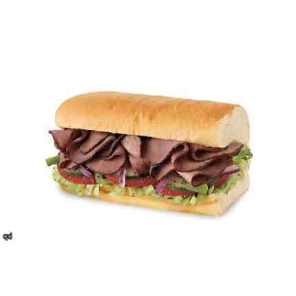 رومى مدخن+لحم روزبيف مع شرائح الشيدر مع أرضية من الكابوتشى و الخيار المخلل يقدم معه علبه مخلل